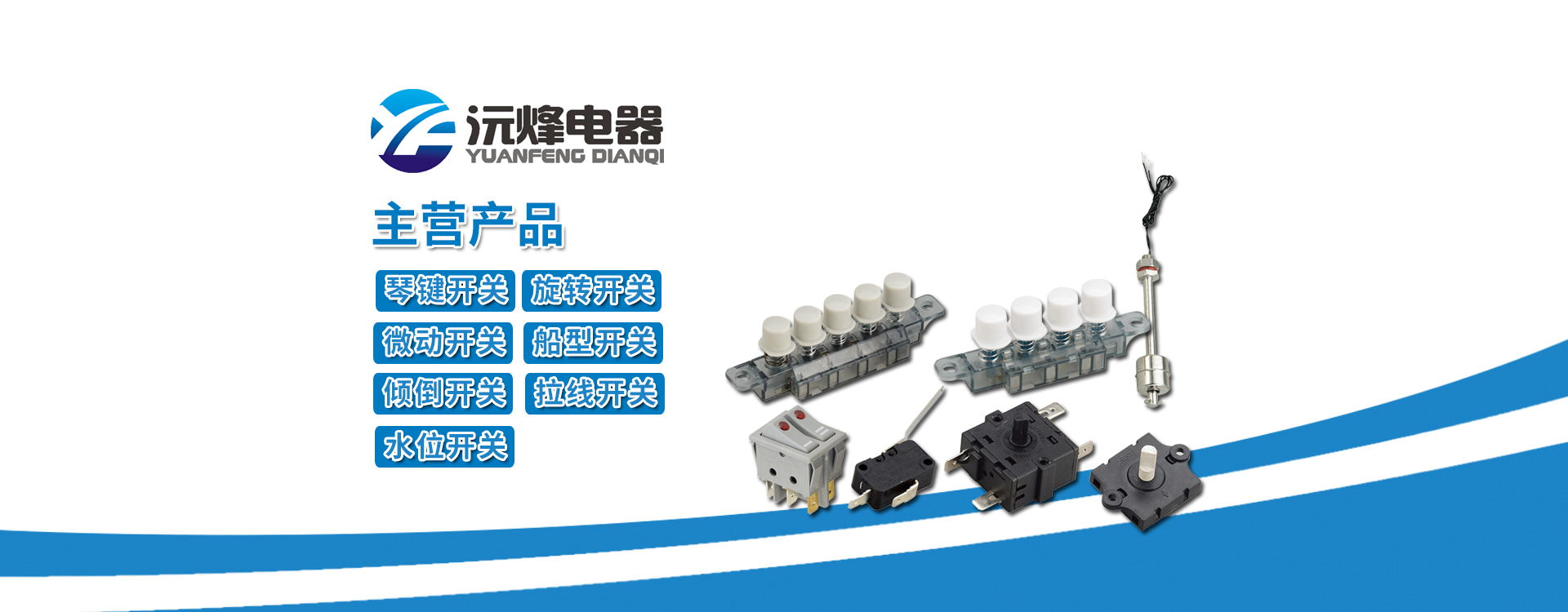 主要生產浮球開關、接近開關、琴鍵開關、旋轉開關、微動開關、船型開關、拉線開關以及接線座等系列產品。